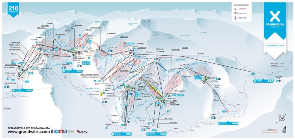 Hieronder vind je een overzicht van de belangrijkste informatie over de skifaciliteiten van skigebied Grandvalira in Andorra, Andorra waaronder 75 skiliften en 128 skipistes. Dit helpt je een duidelijk beeld te krijgen van wat het skigebied te bieden heeft, zodat je goed voorbereid aan je skivakantie kunt beginnen in Grandvalira, Andorra.